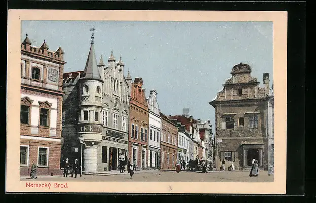 AK Nemecký Brod, Strassenpartie mit Geschäften