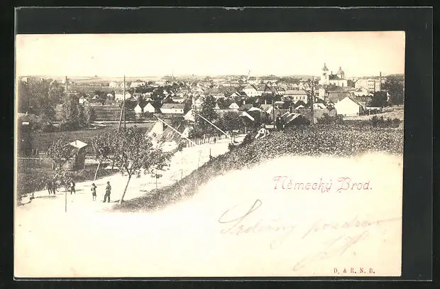AK Nemecký Brod, Weg in den Ort mit Einheimischen