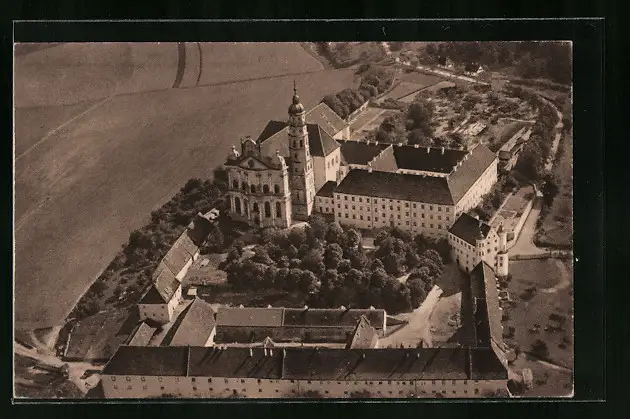 AK Neresheim, Benediktiner-Abtei vom Flugzeug aus