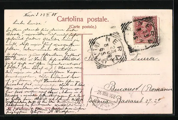 alte Ansichtskarte, gelaufen 1908, Stempelspur, guter Zustand