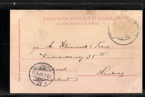 gelaufen 1901, Briefmarke entfernt, guter Zustand