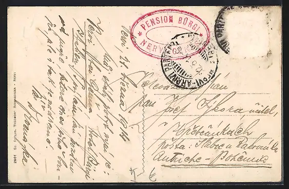alte Ansichtskarte, gelaufen, Briefmarke entfernt, rückseitig Oberflächenschaden, guter Zustand