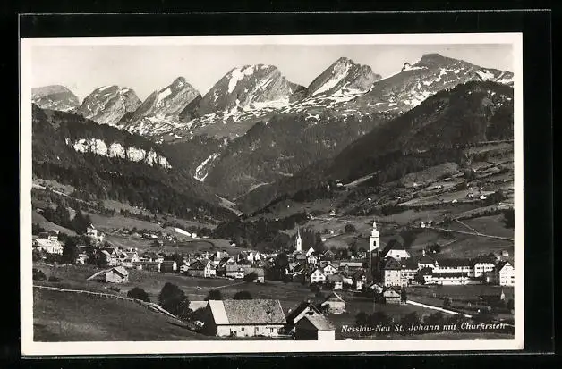 AK Nesslau-Neu St. Johann, Gesamtansicht mit Churfirsten