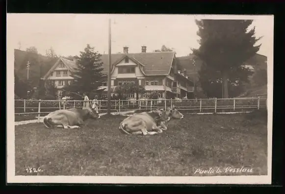 AK Nesslau, Partie bei Nesslau, Ruhende Kühe auf der Weide