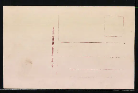 Personenbezogene Daten auf der Rückseite der Karte wurden durch blauen Textmarker unkenntlich gemacht. Die blauen Stellen sind auf die Vorderseite durchgeweicht und wirken sich negativ auf das Postkartenfoto aus