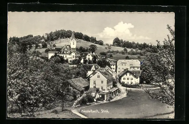 AK Nestelbach, Ortsansicht mit Häusern und Kirche
