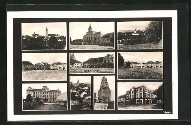 AK Netolice, Gebäudeansicht, Denkmal, Ortspartie