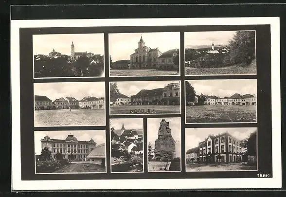 AK Netolice, Gebäudeansicht, Denkmal, Ortspartie