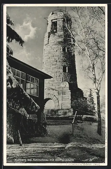 AK Netzschkau / Vogtl., Kuhberg mit Bismarckturm