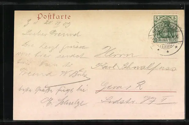 alte Ansichtskarte, gelaufen 1909, guter Zustand