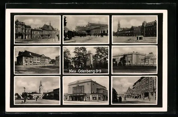 AK Neu Oderberg, Kirche, Theater, Strassenpartie
