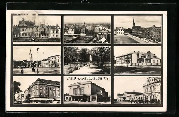 AK Neu Oderberg, Platz mit Kirche, Strassenpartien mit Geschäften