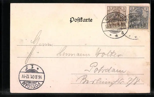 alte Ansichtskarte, gelaufen 1901, Stempelspur, guter Zustand