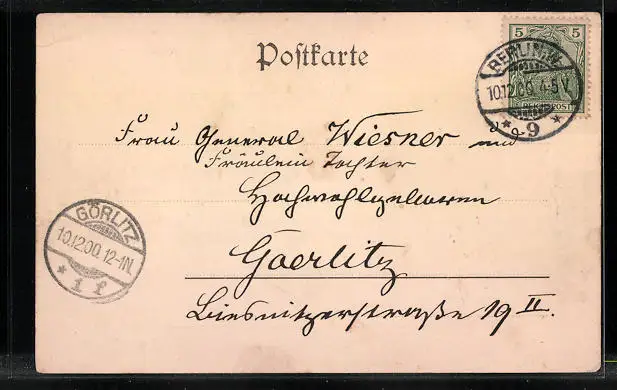 alte Ansichtskarte, gelaufen 1900, guter Zustand