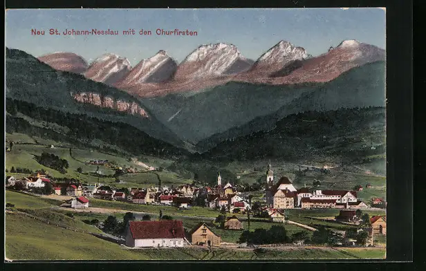 AK Neu St. Johann-Nesslau, Ortsansicht mit den Churfirsten