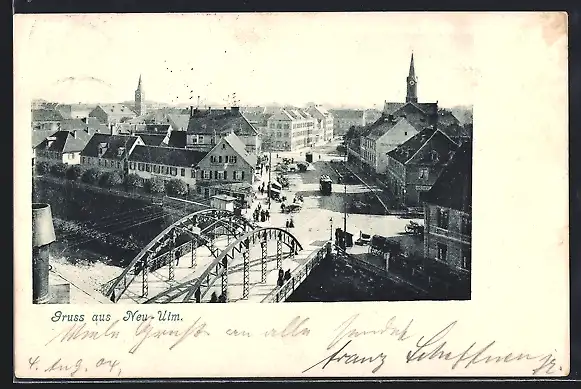 AK Neu-Ulm, Ortspartie mit Strassenbahn