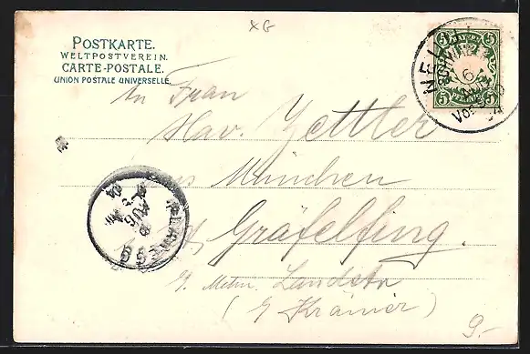 alte Ansichtskarte, gelaufen 1904, Stempelspur, guter Zustand