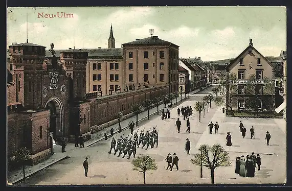 AK Neu-Ulm, Strassenpartie an der Kaserne mit Patrouille