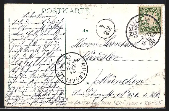 alte Ansichtskarte, gelaufen 1906, Eckknick re. oben, guter Zustand