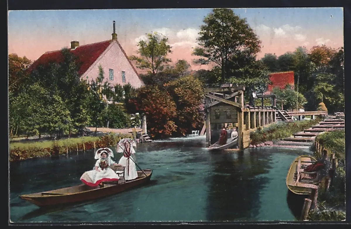 AK Neu-Zauche, Forsthaus Kannomühle mit Schleuse
