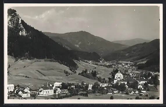 AK Neuberg a. d. Mürz, Ortsansicht mit Blick ins Tal