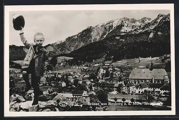 AK Neuberg a. d. Mürz, Teilansicht und Junge in Tracht