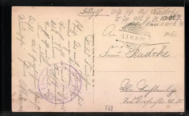 alte Ansichtskarte, gelaufen 1916 als Feldpost, guter Zustand