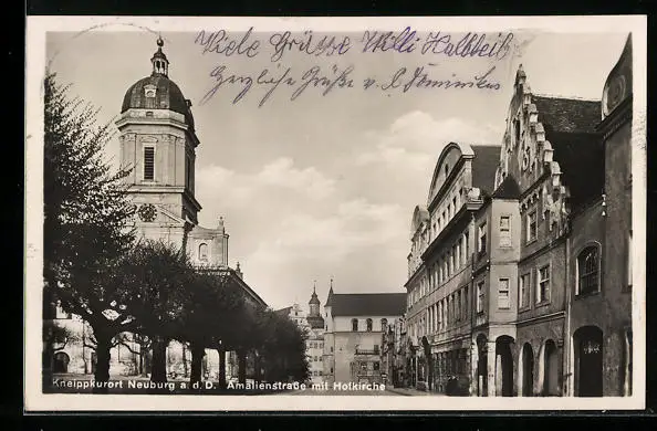 AK Neuburg /Donau, Amalienstrasse mit Hofkirche