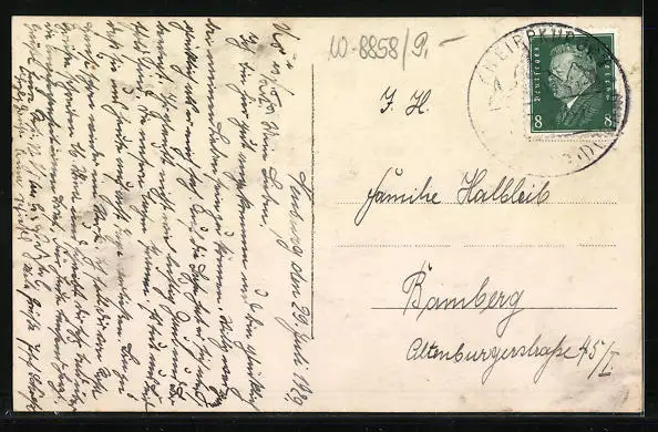 alte Ansichtskarte, gelaufen 1929, Stempelspur, guter Zustand