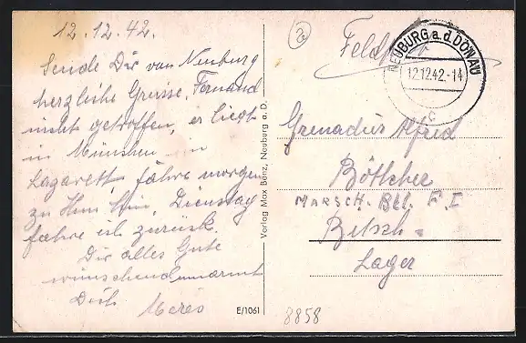 alte Ansichtskarte, gelaufen 1942, Eckknick re. unten, guter Zustand