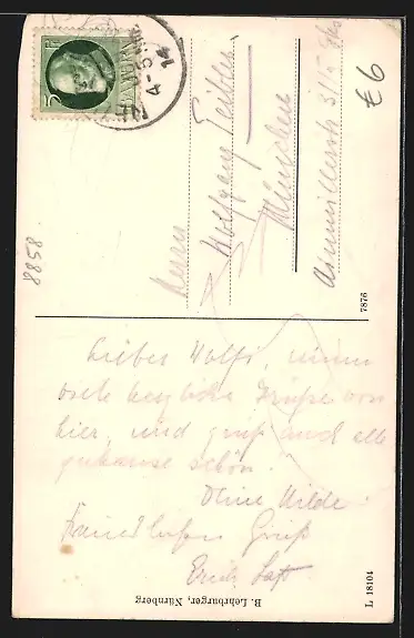 alte Ansichtskarte, gelaufen 1914, re. obere Ecke beschnitten, guter Zustand