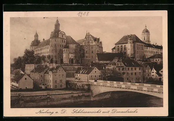 AK Neuburg a. D., Schloss mit Donaubrücke