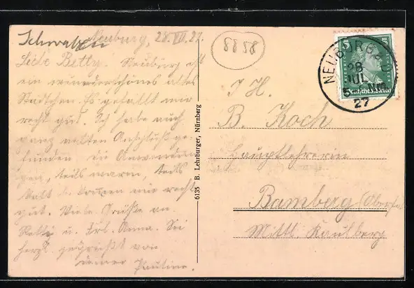 alte Ansichtskarte, gelaufen 1927, guter Zustand