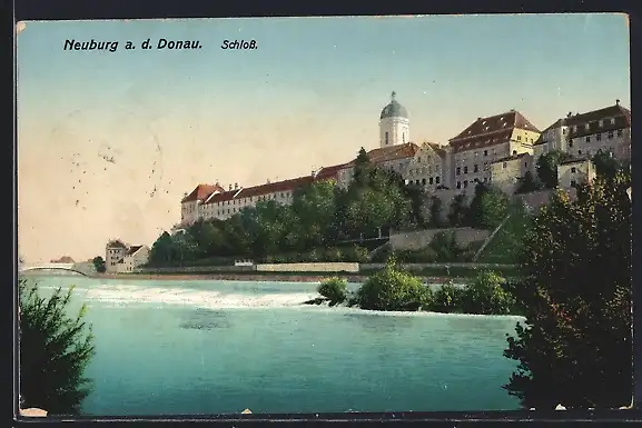 AK Neuburg a. d. Donau, Schloss mit Flusspartie