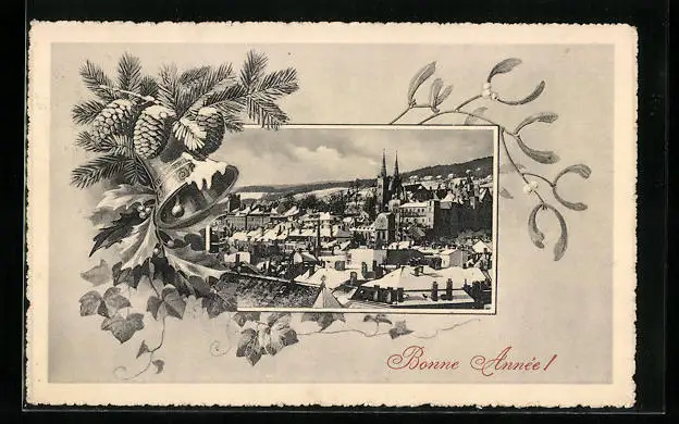 AK Neuchâtel, Bonne Année!, Teilansicht der Stadt