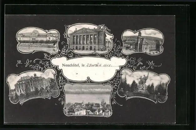 AK Neuchatel, Denkmal, Panorama, Gebäudeansichten