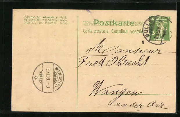 gelaufen 1909, Eckknick re. unten, guter Zustand