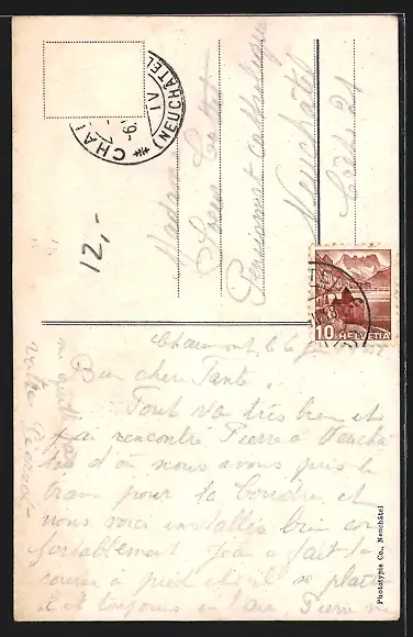 alte Ansichtskarte, gelaufen, Briefmarke entfernt, rückseitig Oberflächenschaden, guter Zustand