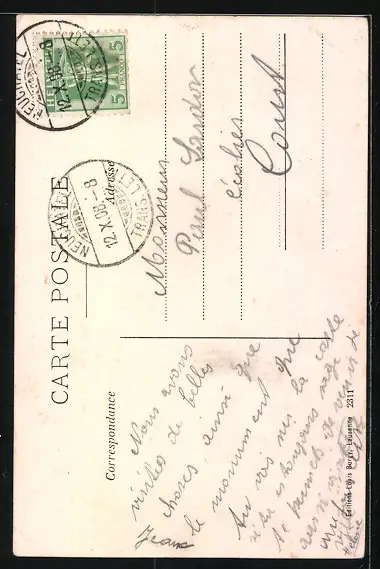 gelaufen 1908, Eckknicke li. oben u. re. unten, guter Zustand