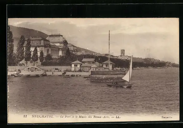 AK Neuchâtel, Le Port et le Musée des Beaux-Arts