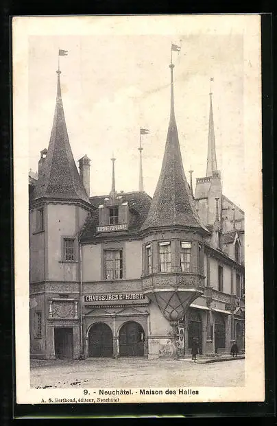 AK Neuchatel, Maison des Halles, Chaussures E. Huber