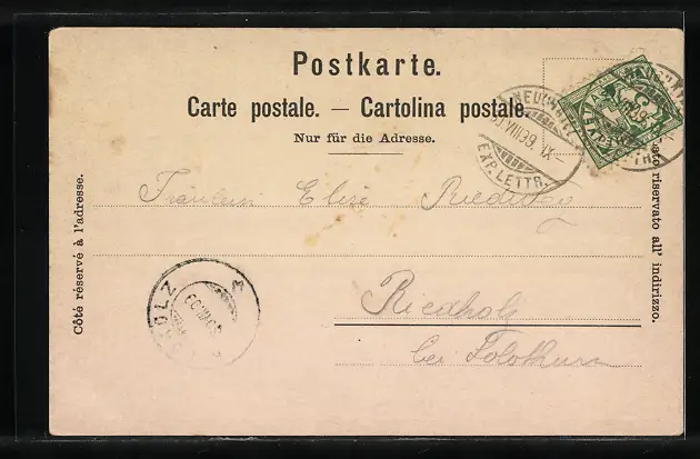 alte Ansichtskarte, gelaufen 1899, Stempelspur, guter Zustand