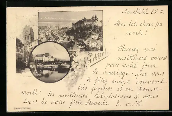 AK Neuchatel, Ortsansicht mit Uferpartie