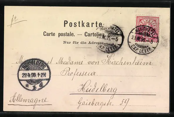 alte Ansichtskarte, gelaufen 1896, guter Zustand