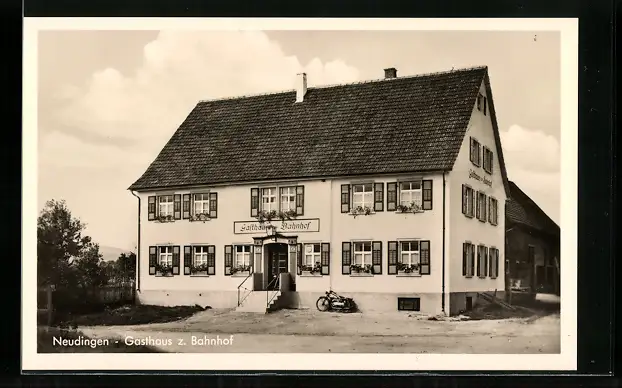 AK Neudingen, Gasthaus zum Bahnhof mit Motorrad