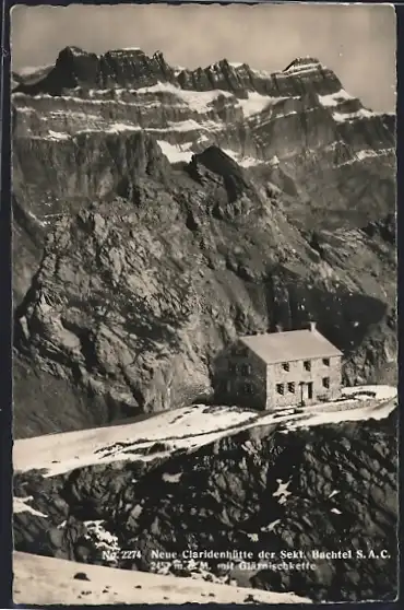 AK Neue Claridenhütte, Partie mit Glärnischkette