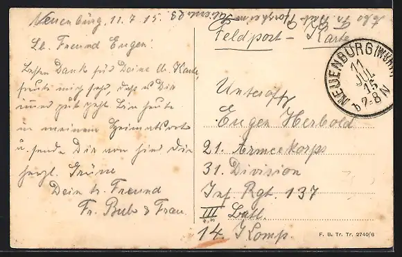 alte Ansichtskarte, gelaufen 1915, guter Zustand