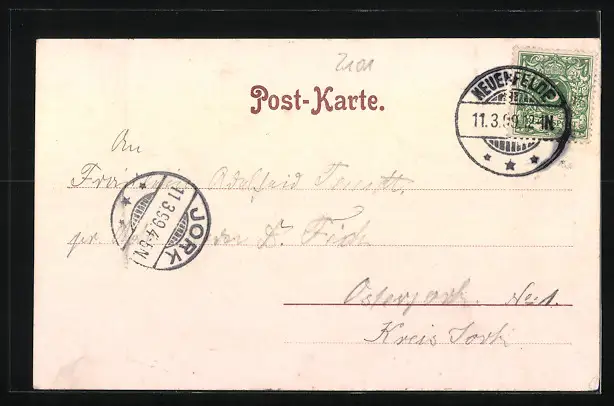 alte Ansichtskarte, gelaufen 1899, guter Zustand