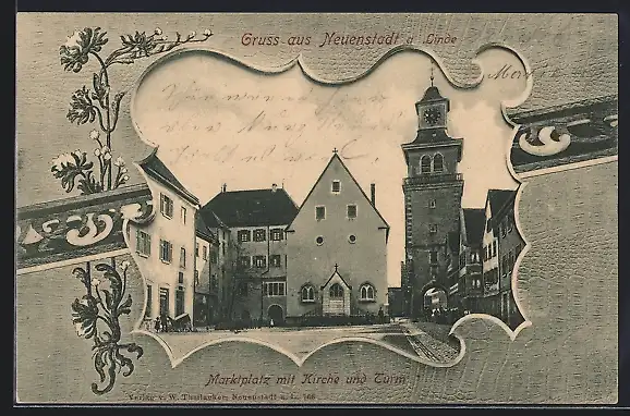 AK Neuenstadt a. Linde, Marktplatz mit Kirche und Turm