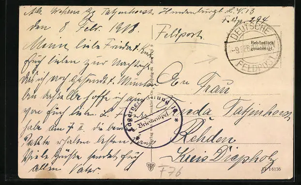 alte Ansichtskarte, gelaufen 1918, Eckknick re. unten, Oberflächenschaden, guter Zustand